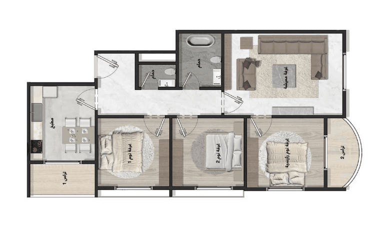 | تقسيم الشقة | غرفة المعيشة : 3.80*5.50 م |