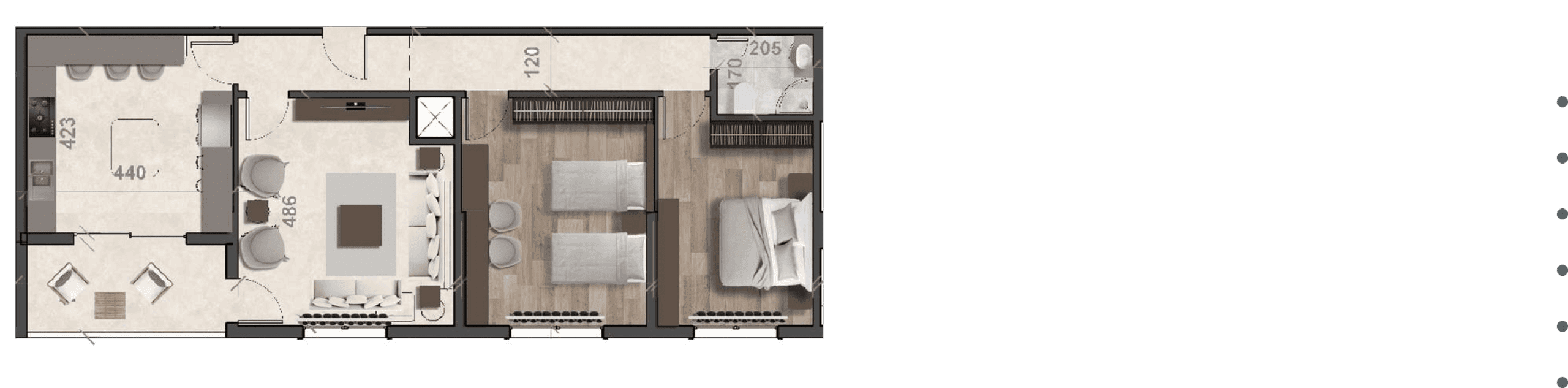 | التقسيم الداخلي | غرفة المعيشة: 4.60 * 4.86 م |